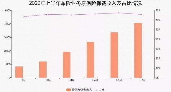 前6个月,车险业务保费收入占财产险业务总保费收入的比重基本稳定在63%-68%之间,且不时有小幅度下降。