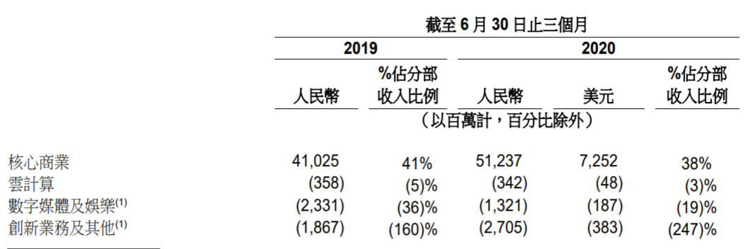 包括电商和新零售在内的核心商业,依然是本季度阿里唯一盈利的板块。