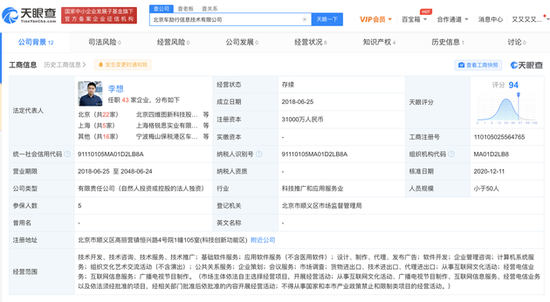 天眼查数据显示,北京车励行信息技术有限公司成立于2018年6月,法定代表人为李想,经营范围包含技术开发、技术咨询、技术服务、技术推广;基础软件服务等,由北京车和家信息技术有限公司100%持股。