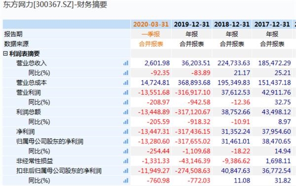 除了内控失序、股东违规担保问题之外,东方网力的经营状况也出现诸多问题。据财报数据显示,2019年,东方网力归属母公司股东净利润亏损了31亿元,同比下滑1109%。2020年一季度,东方网力继续亏损超1.3亿元,同比下滑254%。