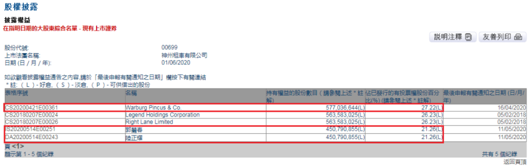 联交所最新权益披露资料显示,由于此前的强制出售股份和股东被动减持,陆正耀旗下神州优车持有神州租车的股份已下降至21.26%。