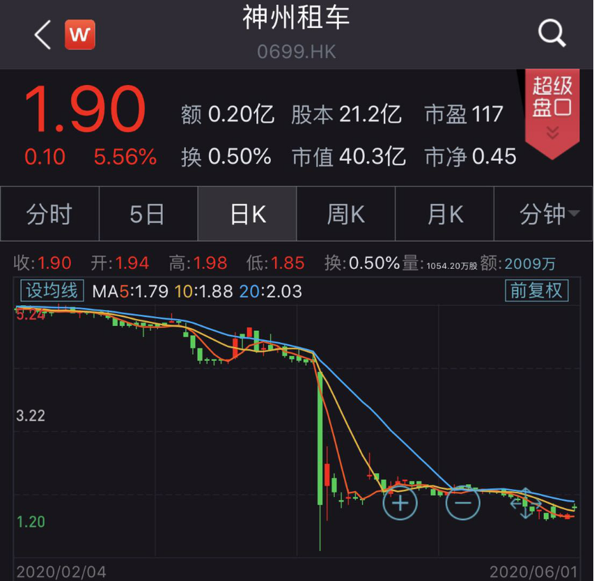 4月3日开盘后,神州租车暴跌超70%一度临时停牌,股价更是最低跌至1.20港元/股。