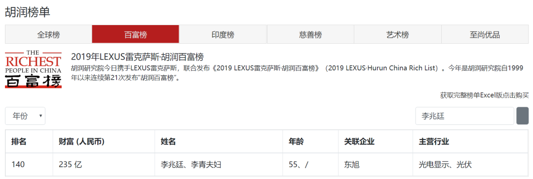 随着不断的增资与运作,李兆廷的身家亦扶摇直上。据《2019年胡润百富榜》显示,李兆廷与李青夫妇以235亿财富值,位列榜单第140位。