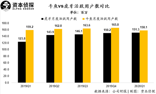 而斗鱼方面尽管在收入规模上仍略逊于虎牙,一季度营收22.8亿元人民币,但收入同比增幅则为53%,高于虎牙收入同比增速。