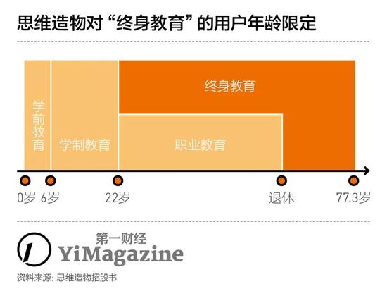 取而代之,以知识服务为核心业务的思维造物,对外抛出一个听起来更宏大的产业定义——终身教育,称其涵盖的用户年龄是以22岁(结束学制教育、踏入职场)为起点,直到77.3岁(2019年中国人的平均寿命)。