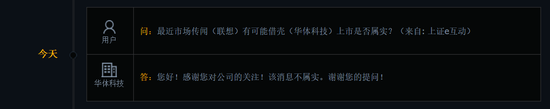 华体科技:联想借壳公司上市传闻不属实
