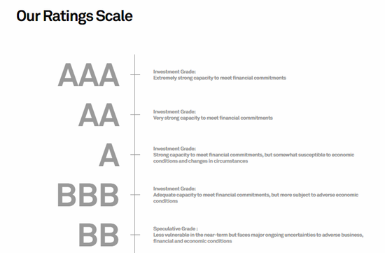 虽然在标普的评级表中,BB为投机类的最高评级大类,不过在实践中,标普可在每个评级后面加上加号和减号,表示评级在各主要评级分类中的相对强度。特斯拉债券若要被列入投资级,可能要跨越BB+、BBB-两个台阶。
