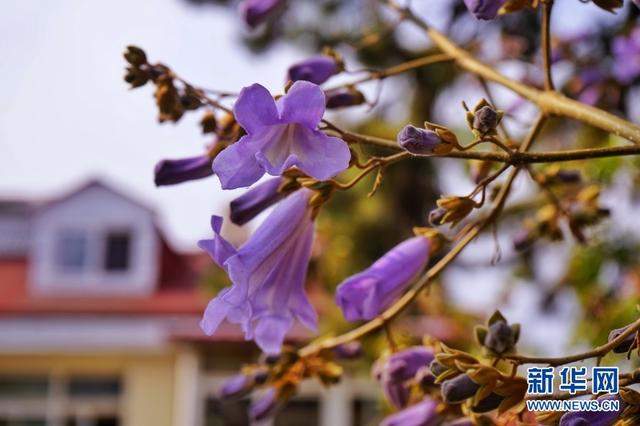 4月27日,泡桐花、紫藤花竞相开放,青岛进入紫蓝色系,红瓦翠树的老城区在紫蓝色系映衬下美得如梦如幻。新华网发(董志刚 摄)