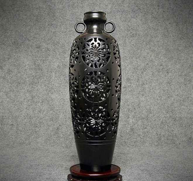 刘德功作为生长在这片古老土地的新一代黑陶艺术家,始终把复兴龙山黑陶艺术,作为自己一份义不容辞的历史责任,为之孜孜以求。这件作品就是他传承与创新蛋壳陶技艺的经典制作。该作品在第二届济南陶瓷艺术设计创新评比中荣获金奖。